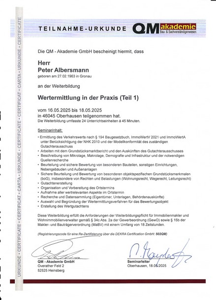Damit wir im Bereich der Immobilienbewertung und der Gutachtenerstellung fachlich ständig auf den aktuellsten Stand bleiben, haben wir uns auch in diesem Jahr bei unserem QM-Partner der QM-Akademie ....